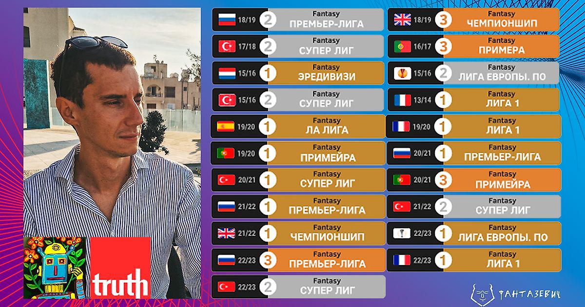 От редакции: мы в блоге «Фантазевич», одном из главных источников для тех, кто играет в фэнтези. Тут разговор с невероятным мастером Fantasy-турниров – Владимиром VGR22. Просто загляните в его профиль и оцените количество чемпионских звезд, чтобы понять, насколько это заслуженный герой. Поддержите интервью плюсом, подпиской на блог и телеграм-канал Миши Фантазевича.