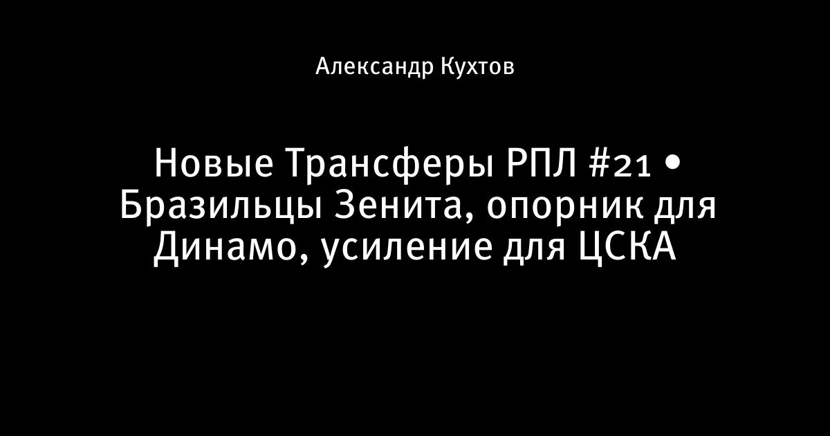 Друзья, всем привет. Очередной трансферный выпуск, с котором мы поговорим о бразильцах Зенита, куда же без них, кто интересен Динамо и когда они вообще уже привезут опорника, а так же что там у ЦСКА, собираются ли они вообще кого то покупать или нет. Вы на канале Время Футбола, давайте начинать.