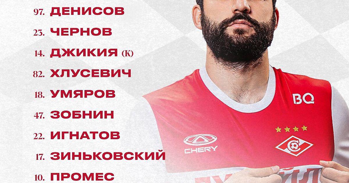 «Спартак»: Максименко, Денисов, Чернов, Джикия (к), Хлусевич, Умяров, Зобнин, Игнатов, Бальде, Промес, Зиньковский.