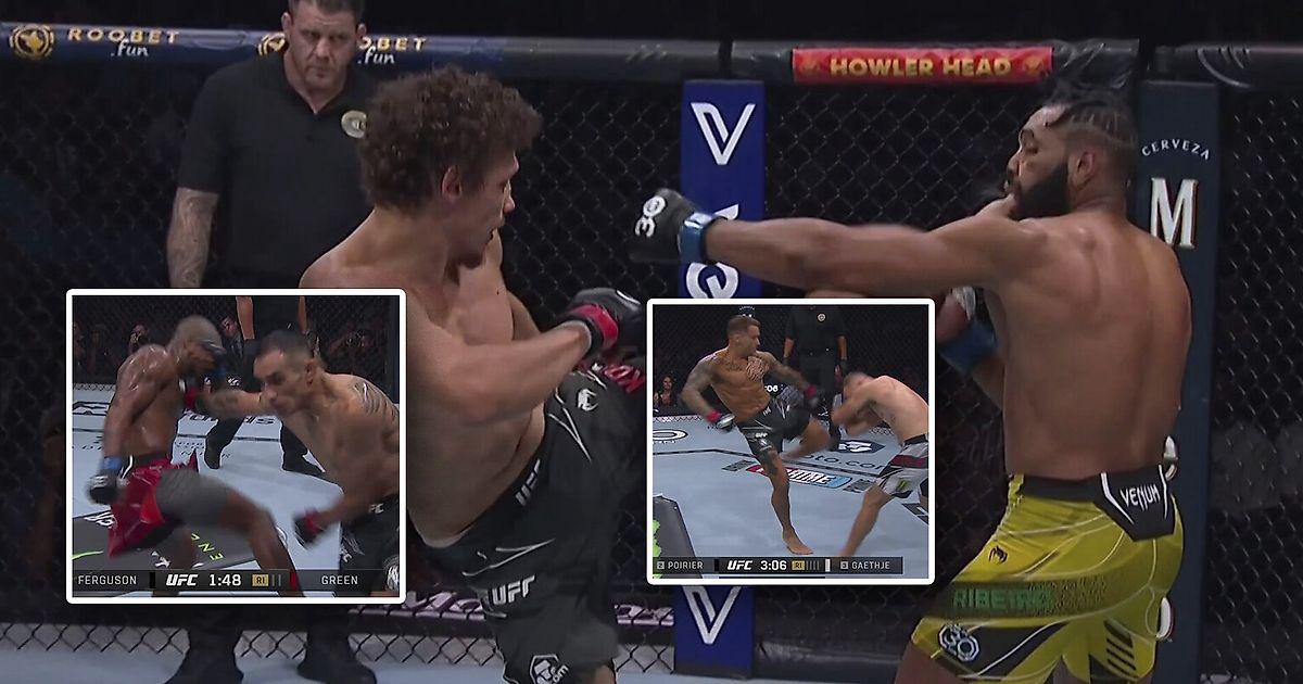 Фергюсон пытался начать комбинацию, Грин встретил его прямым ударом в колено, сбив с движения и тайминга