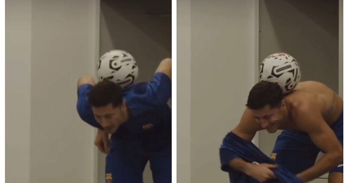 Роберт показал ролик из раздевалки, в котором он с мячом на спине умудрился сначала снять футболку, а затем надеть ее обратно. Удивительный контроль мяча.