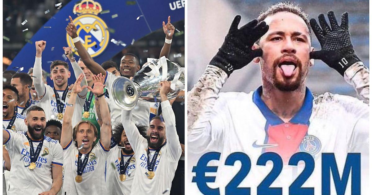 В сети засирусилась противоречивая инофграфика, на которой сравнили цену состава мадрисдкого «Реала»-2021/22 и сумму за переход Неймара в «ПСЖ» в 2017-м. Суммы очень блики – и это немного жутко, ведь «Мадрид» на эти же деньги собрал состав победителей ЛЧ, а «Париж» купил только одного игрока.