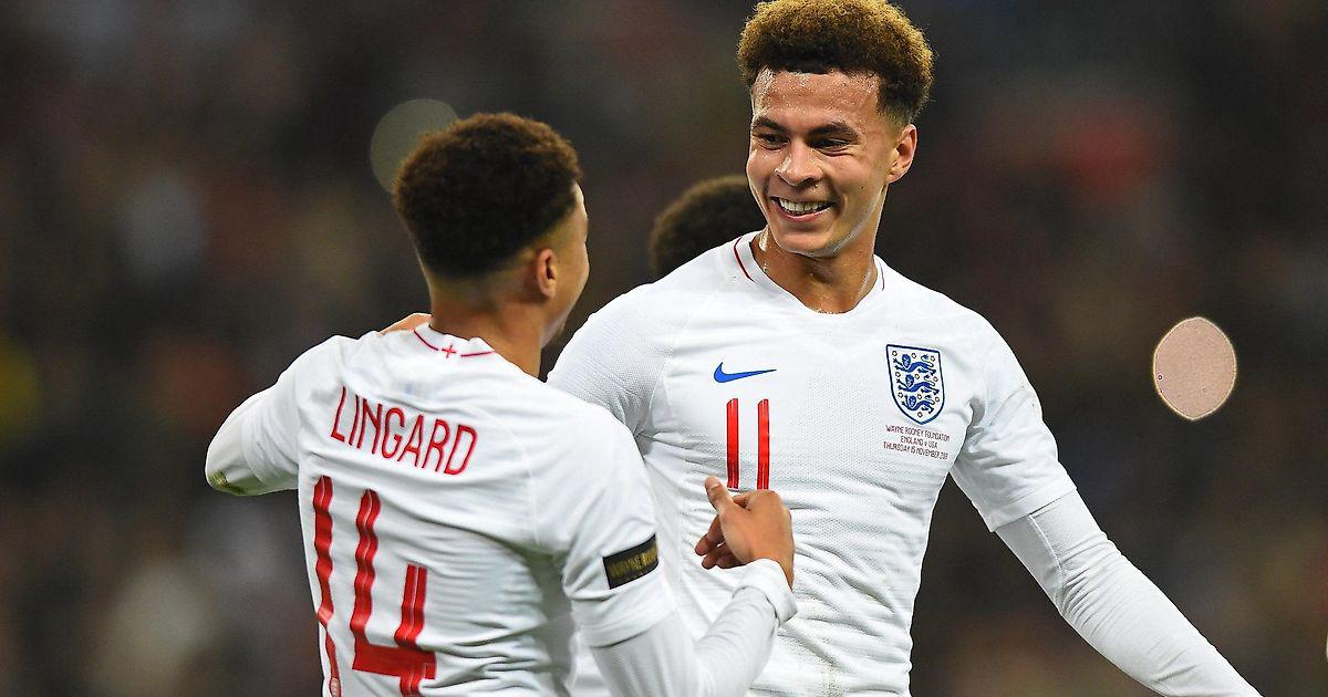 1. Деле Алли. 37 матчей и 3 гола за сборную. В октябре 2015 года был вызван в первую сборную Англии. Дебютный матч провел 9 октября против сборной Эстонии. Сейчас Алли 27 лет, недавно перешёл в Эвертон, в сборную давно не вызывается, но будем надеяться, что он сможет перезапустить свою карьеру.