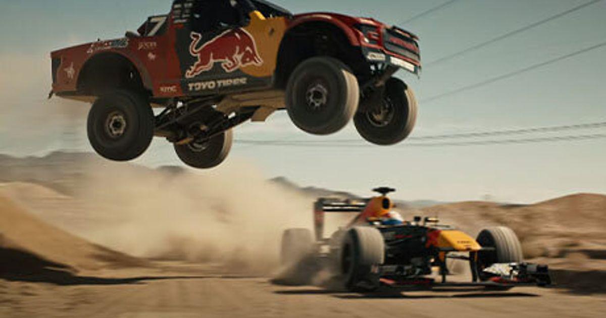 По сюжету Чеко классно развлекся ночью в Вегасе: сделал пару ставок против раллийного гонщика программы «Ред Булл» Брайса Мензиса (пилот из соседней Аризоны, многократный победитель американских «Бах» и ралли-кросса), получил от него вызов на гонку в пустыне, угнал чемпионский болид Феттеля 2012-го со стенда и прокатился по казино…