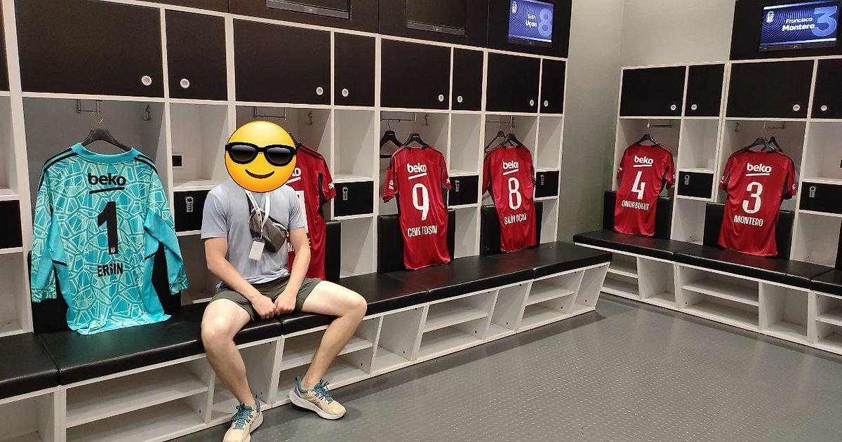 Далее мы идём в домашнюю раздевалку "Бешикташа". Каждое место подписано формой на новый сезон. В раздевалке поймал себя на мысли, что "Бешикташ" хорошо так укомплеткован игроками, с такой обоймой можно попытаться и пройти отбор не в Лигу Европы, а в Лигу чемпионов.