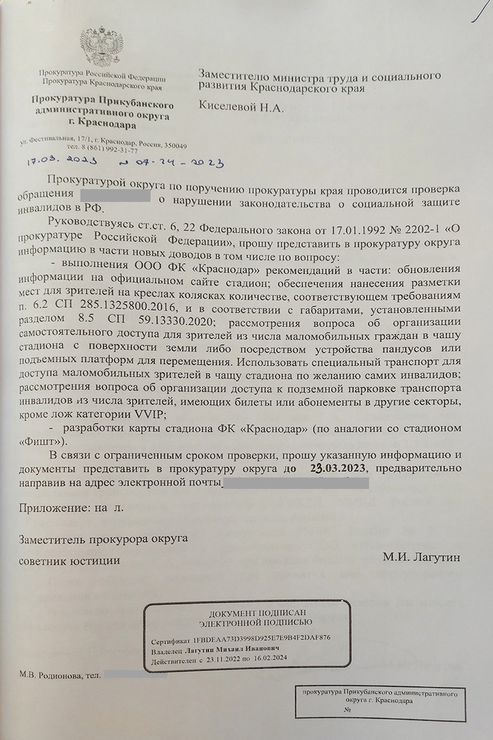 ФК «Краснодар» частично выполнил рекомендации Министерства труда и социального развития Краснодарского края
