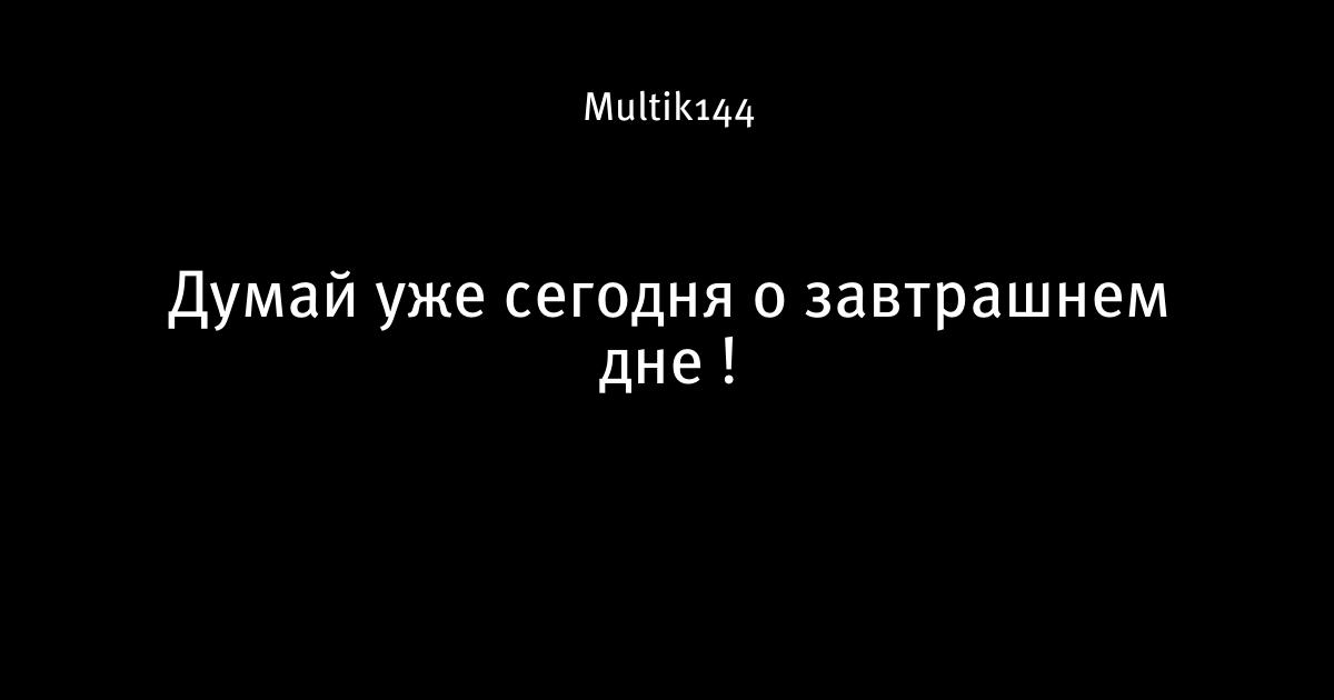 Думай уже сегодня о завтрашнем дне !
