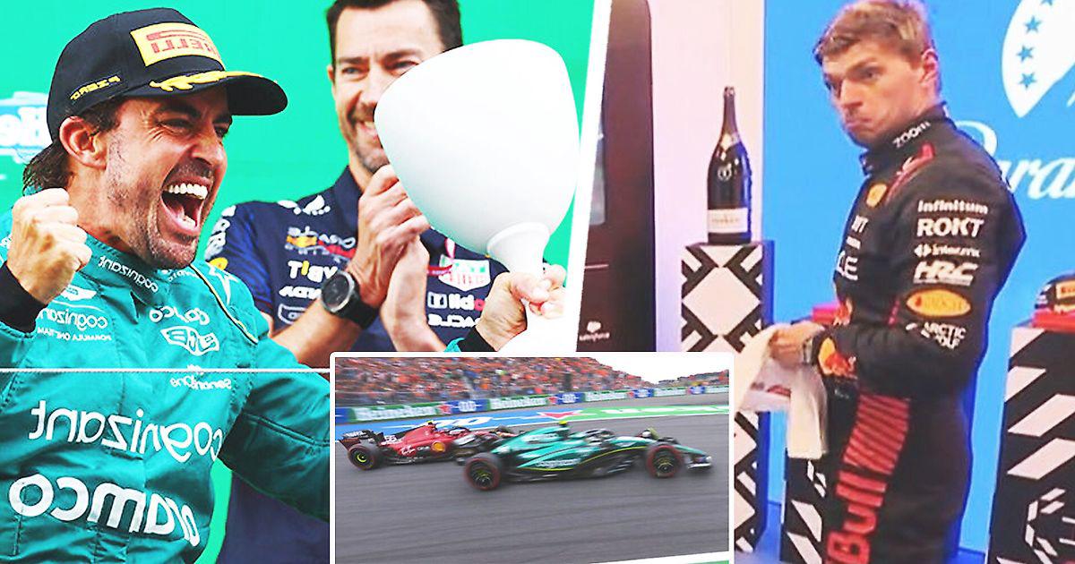 Казалось, испанец спокойно едет на подиум после обоих «Ред Булл», но на следующей волне пит-стопов «Астон Мартин» замешкался с его покрышкой и задержал Алонсо на 8 секунд: