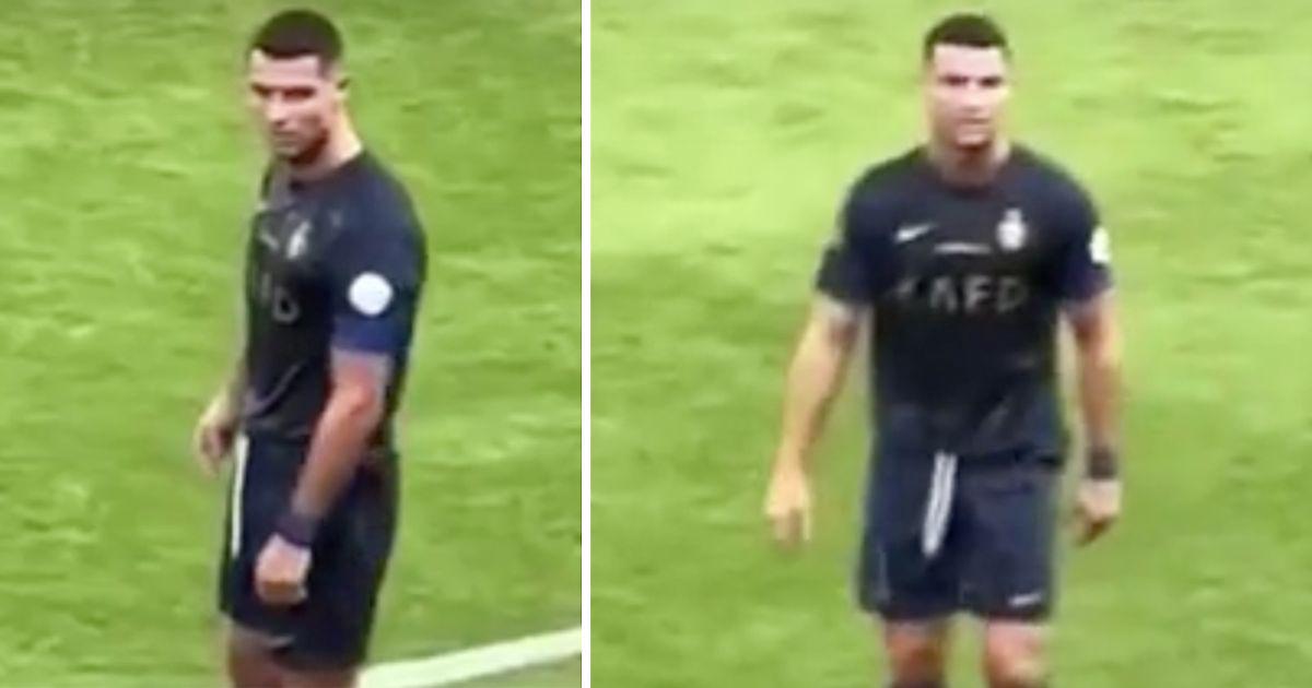 Криштиану снова был недоволен арбитрами – а потом увидел, что кто-то кинул бутылку с трибун, и она приземлилась рядом с ним.
