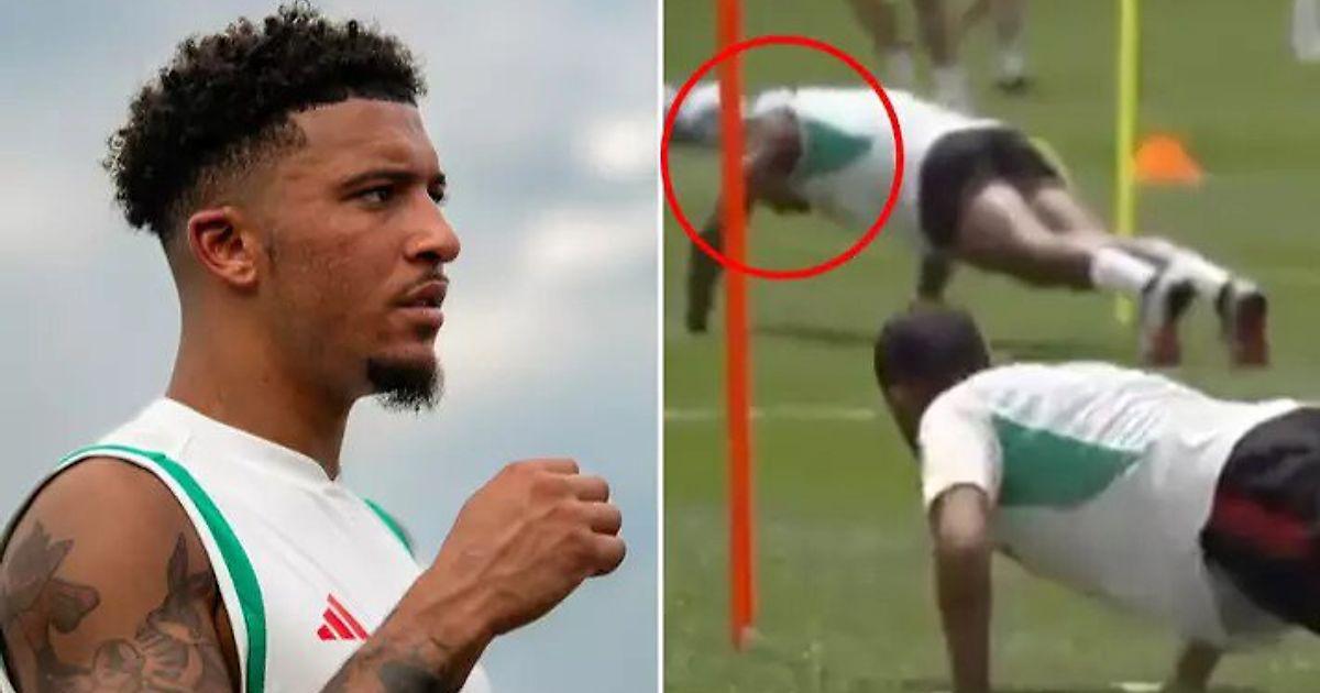 Многие болельщики сразу же заинтересовались, действительно ли Санчо филонит на занятиях или тен Хаг к нему несправедлив. Сначала всплыли доказательства, что у вингера последовательно возникали проблемы с тренировками в каждой из команд, где он игра. А после в сети завирусилось видео, на котором англичанин отжимается позади Бруну Фернандеша.