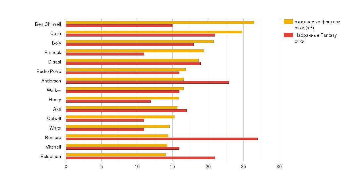 Ожидаемые фэнтези очки — очень не очевидная штука. Разброс между ними и фактическими на старте сезона у некоторых игроков достигает 15 баллов. Но эта характеристика позволяет понять, насколько каким-то игрокам везёт (или наоборот).