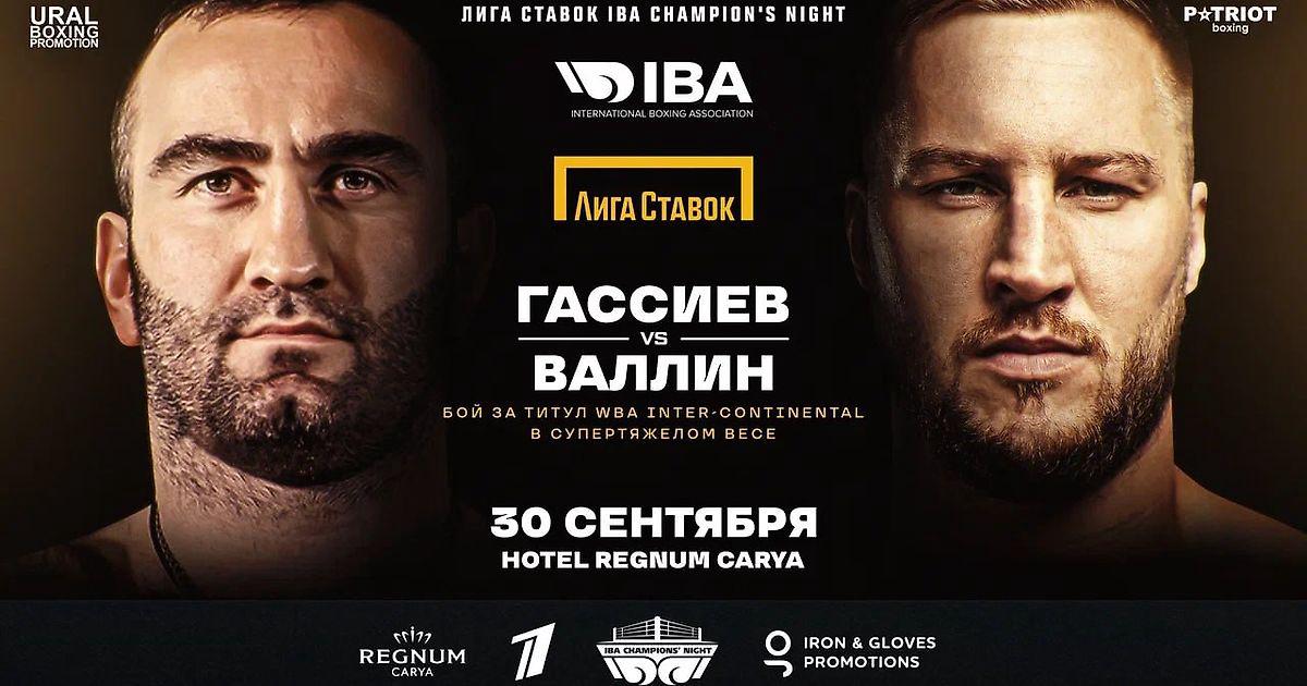 Российский боксёр Мурат Гассиев (30-1, КО 23) 30 сентября в турецком Белеке проведёт защиту пояса WBA Inter-Continental в тяжёлом весе против шведа Отто Валлина (25-1, КО 14). Этот 10-раундовый бой возглавит шоу «Лига Ставок. IBA Champions Night».