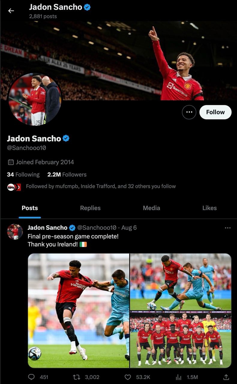 Объявлено перемирие? Санчо удалил пост, в котором раскритиковал слова Тен Хага