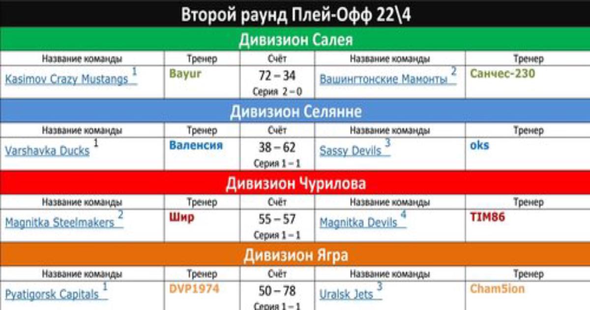Все команды, проигравшие вчера свои матчи, смогли отыграться. Все кроме Мамонтов. Видимо, у вашингтонцев слишком много сил ушло на серию против Дельфинов. А Мустанги выглядят крайне мощно и уверенно. Об этом говорят его 72 очка.