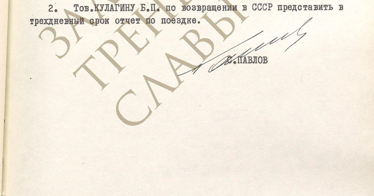 1. В «Вики» написано, что «советские хоккеисты начали упорные тренировки с 1 июля». Тогда получается, что в самый разгар подготовки – 3 августа – старший тренер сборной СССР Всеволод Бобров отбыл на шесть дней в Финляндию «для участия в международном семинаре тренеров» (скан #2). С учётом опубликованного ранее приказа о командировании сборной СССР на матчи в Канаду, получается, что команду в отсутствие Боброва тренировал-готовил – именно Кулагин? Потому что никакой третий тренер в просмотренных в Госархиве документах не указан…