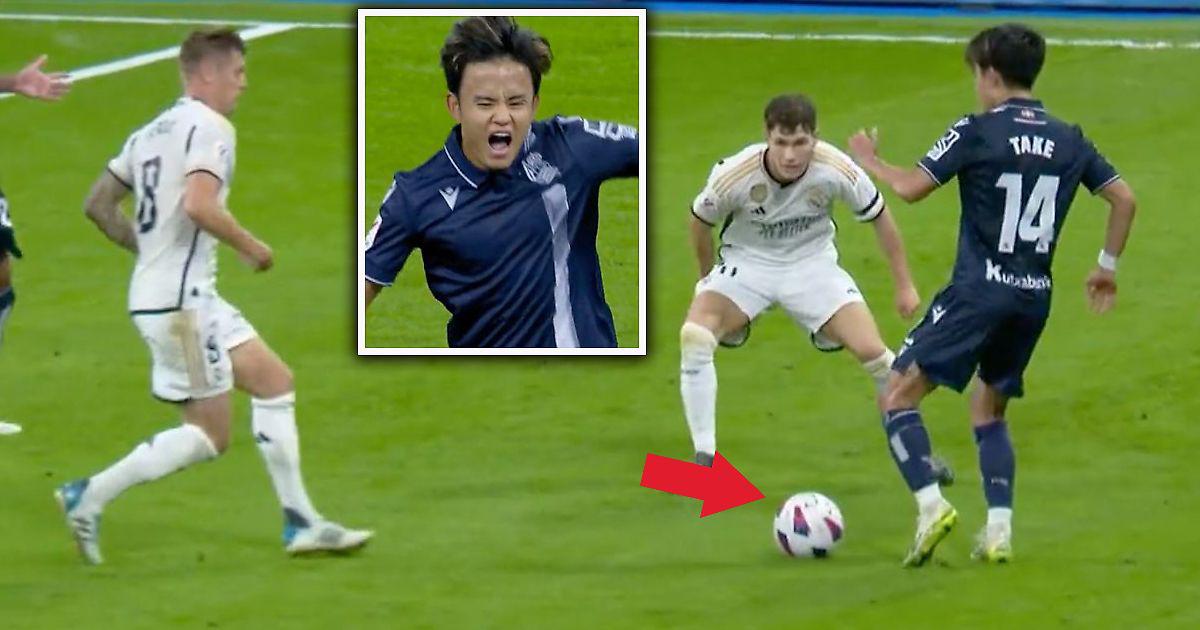 Игрок «Реал Сосьедада» Такефуса Кубо издевательски пробросил мяч между ног Тони Кроосу в матче с «Релом».