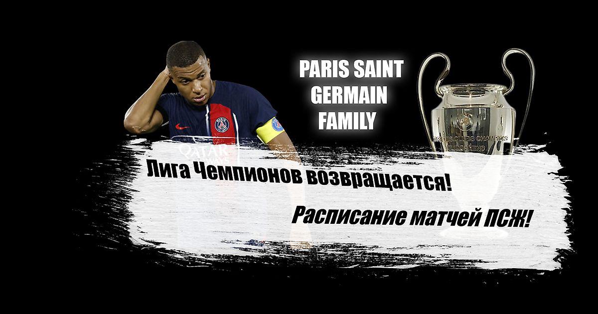Даты: 1)ПСЖ - Боруссия - 19.09.23 (дома) 2)НьюКасл - ПСЖ - 04.10.23 (в гостях) 3)ПСЖ - Милан - 25.10.23 (дома) 4)Милан - ПСЖ - 07.11.23 (в гостях) 5)ПСЖ - НьюКасл - 28.11.23 (дома) 6)Боруссия - ПСЖ - 13.12.23 (в гостях) Удачи нашим парижана в ЛЧ! ЗА ПОБЕДОЙ! ALLEZ PARIS! ТГ Канал - @AllezParisTG Всем удачи! Всем пока!