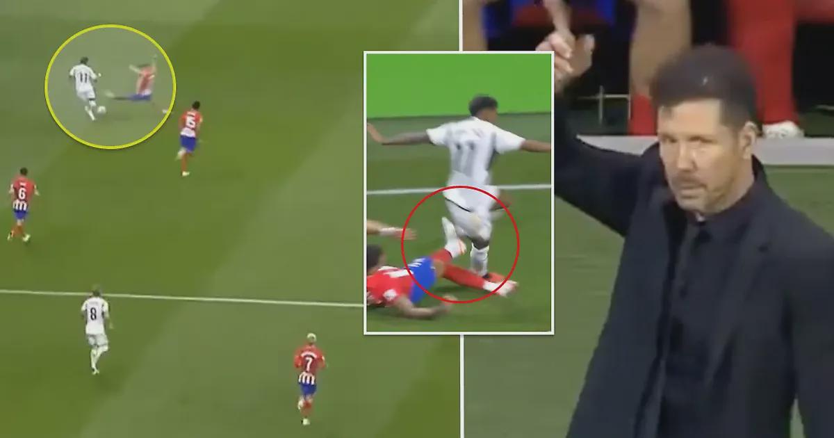 В конце первого тайма мадридского дерби при счете 2:1 на табло «Реал» начал очередную атаку: Родриго был на мяче и готовился убегать по флангу, как Хосе Хименес сбил вингера жестким подкатом.