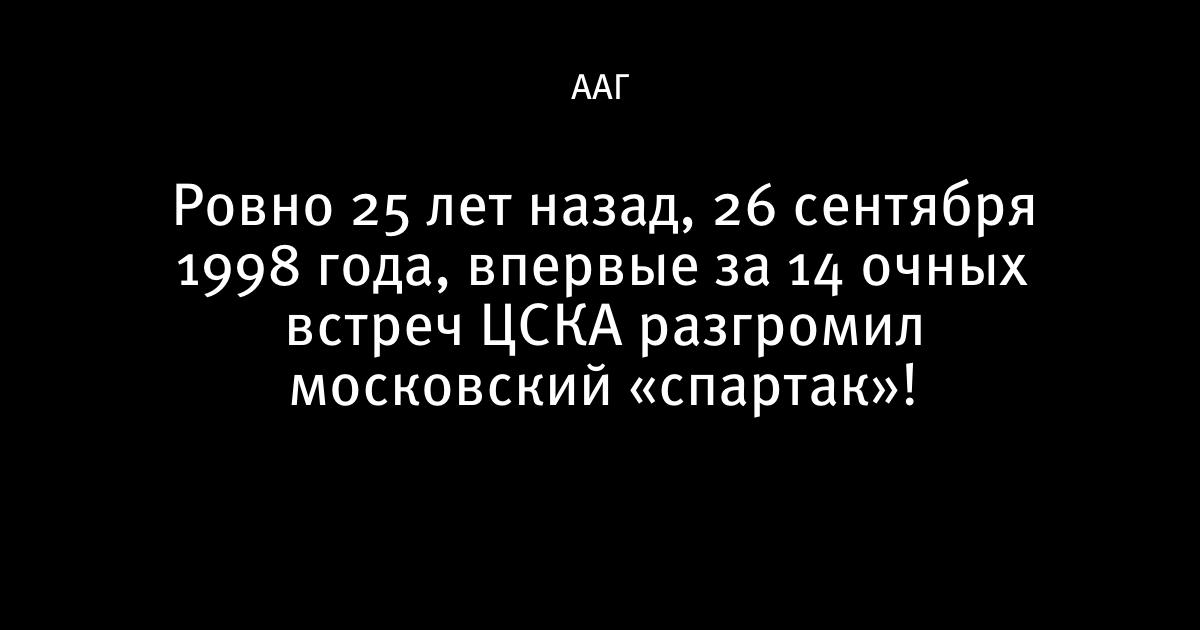 Ровно 25 лет назад, 26 сентября 1998 года, впервые за 14 очных встреч ЦСКА разгромил московский «спартак»!