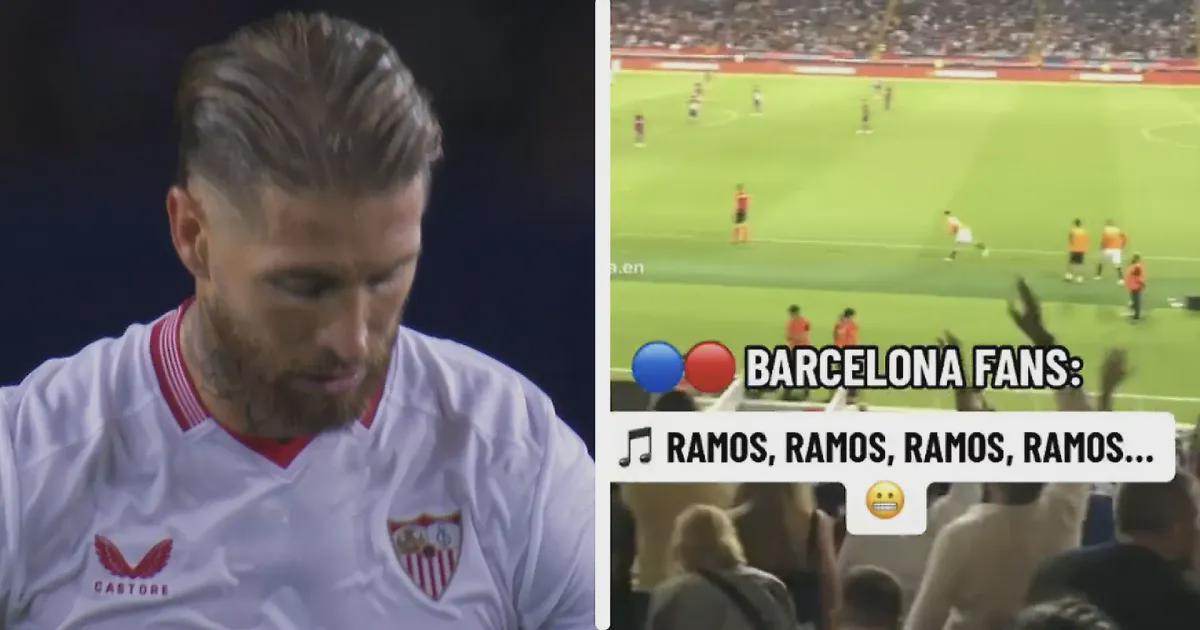 Болельщики «Барселоны» скандировали имя Серхио Рамоса после того, как экс-защитник «Реала» забил мяч в собственные ворота.