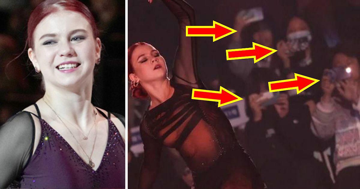 В соцсетях обратили внимание на забавное фото, сделанное во время проката Александры Трусовой на шоу российских фигуристов в Пекине.