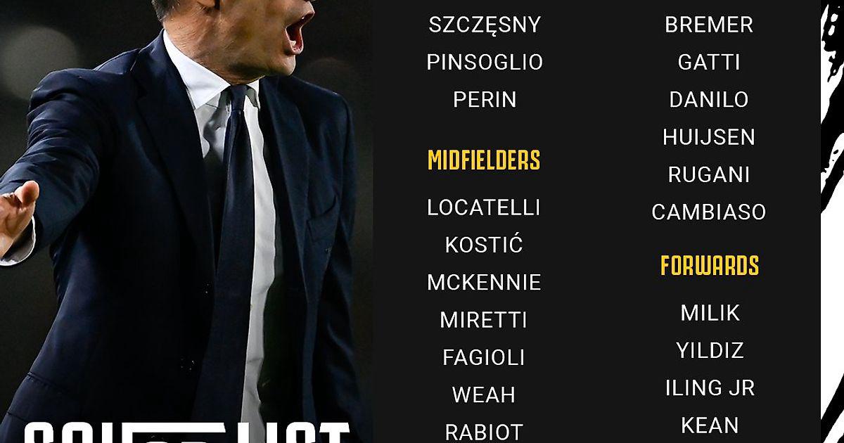 В преддверии большого дерби, которое начнется в 19:00 по московскому времени, тренер «Ювентуса» Массимилиано Аллегри включил в свой состав следующих игроков: