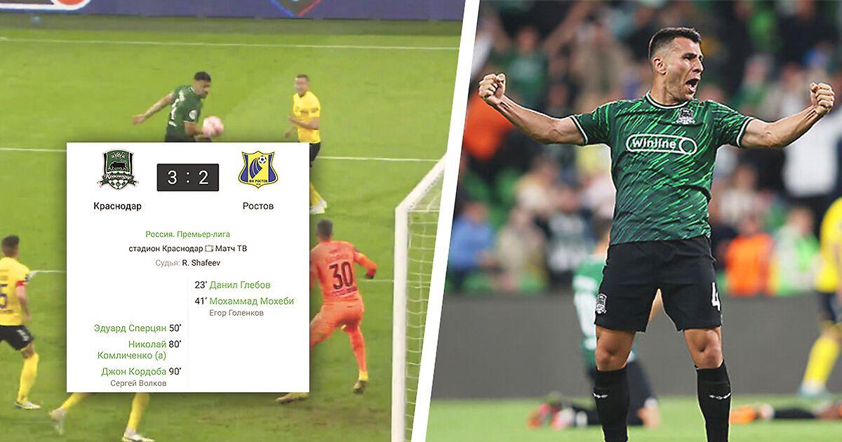 Но на этом хозяева не остановились: на последней добавленной Кордоба отклеился от Мелехина и вколотил третий – перевоплощение «Краснодара» с чудесным концом.