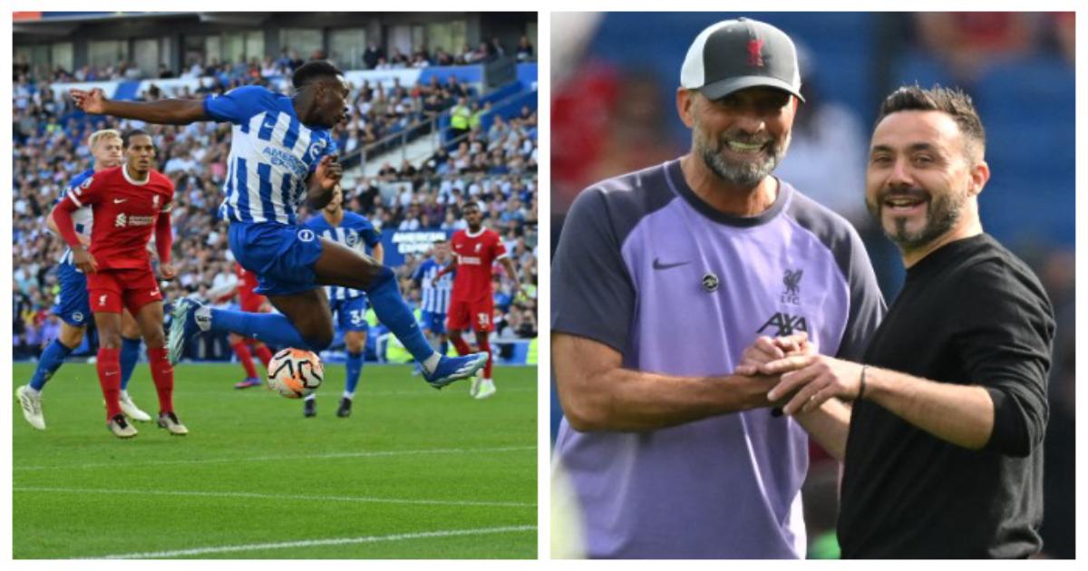 Никакой проверки VAR не было, поэтому главный тренер «Брайтона» Роберто Де Зерби впал в ярость на бровке. Юрген Клопп пытался успокоить его.