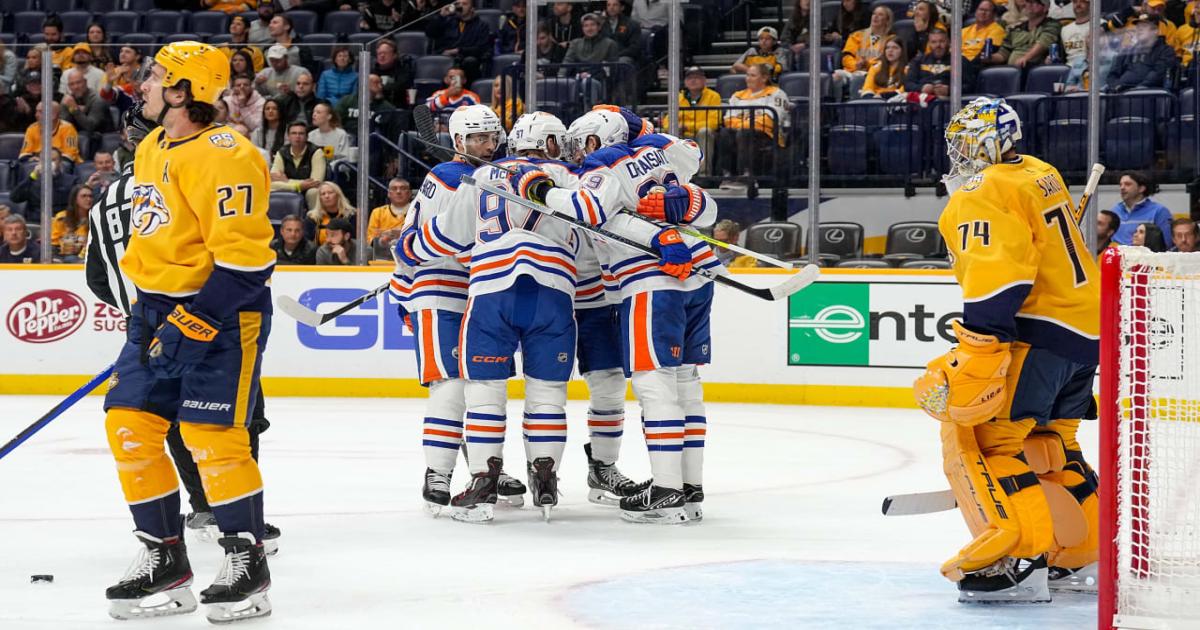 «Нэшвилл Предаторз»-«Эдмонтон Ойлерс» 1:6. Гости в первом периоде забросили 4 шайбы. Леон Драйзайтль набрал 4 очка (2+2), Зак Хаймэн набрал также 4 очка (1+3), Райан Ньюджент-Хопкинс набрал 3 очка (1+2), Уоррен Фогель и Коннор МакДэвид набрали по 2 очка (1+1), Эван Бушар отдал 2 результативные передачи, Джэк Кэмпбелл отразил 42 броска.