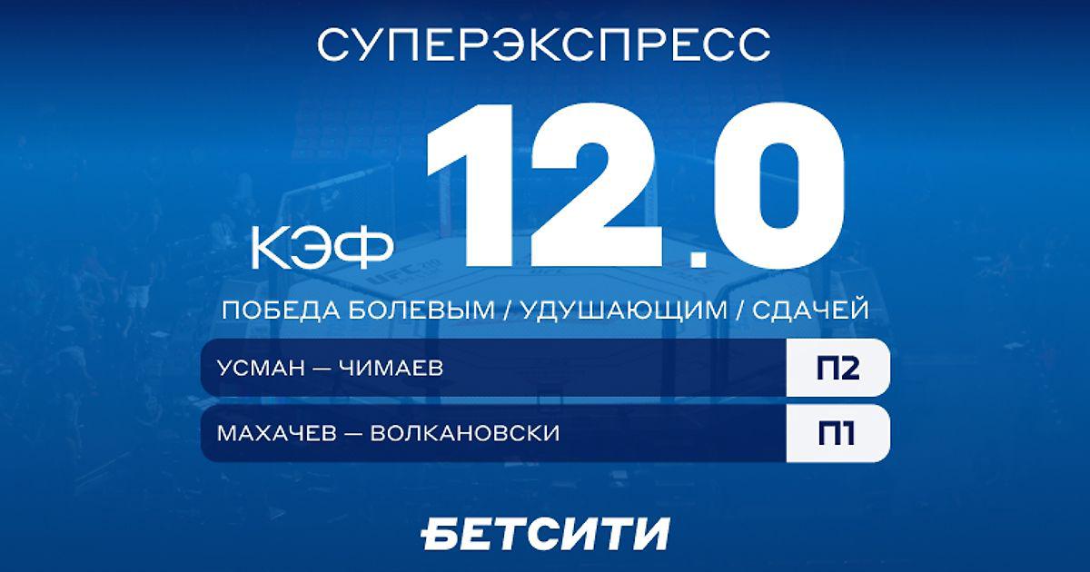 Мы взяли победы Махачева и Чимаева болевым/удушающим/сдачей в один купон и подняли общий коэффициент! Готов рискнуть? Тогда забирай Суперэкспресс с кэфом 12.0 по ссылке!