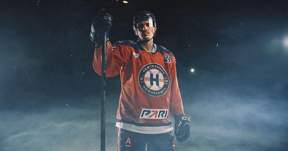 Антураж юбилея передает и внешний вид хозяев - джерси оригинальных морковных цветов с нанесением буквы «Н», которая украшала форму команды 55 лет назад. На воротники нанесены название города Нижнекамска на татарском языке и традиционные национальные узоры, а на плечах и на спине – специальные паттерны с изображением цепи макромолекул синтетического каучука.