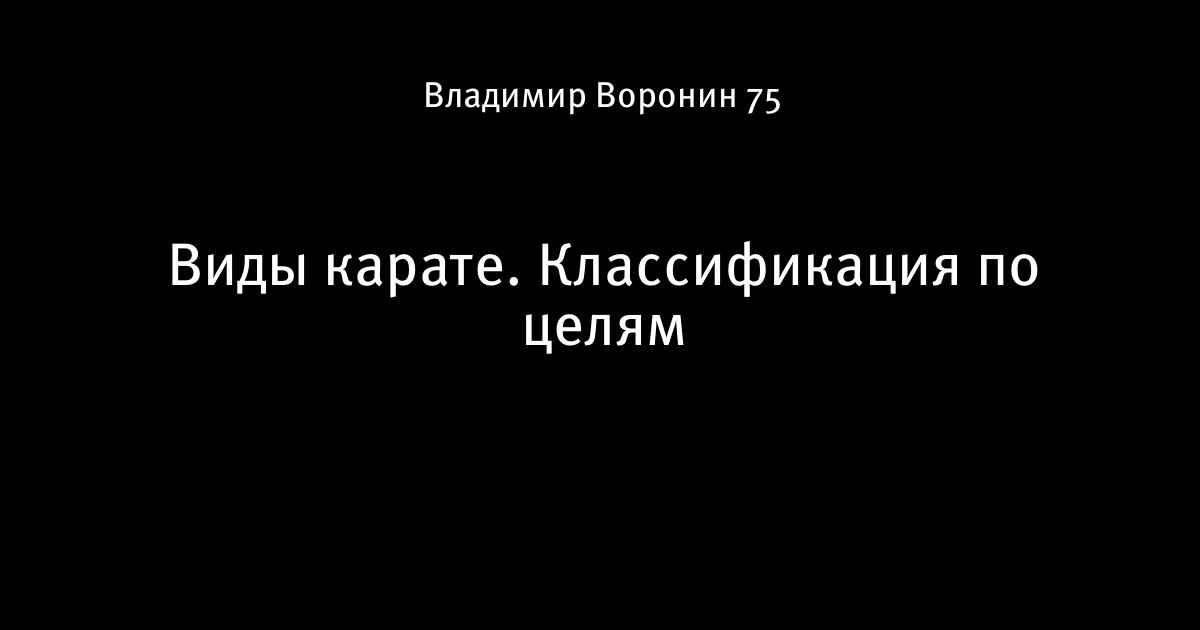 Многообразие движений в этом боевом искусстве делится на каты, определенные серии ударов и блоков. Каты запоминаются и отрабатываются с партнерами по спаррингу или в одиночку. При этом в зависимости от того, о каком виде карате идет речь, сами каты и способы их отработки могут отличаться. Существует несколько видов классификации карате, в этой части рассмотрим разделение по целям.