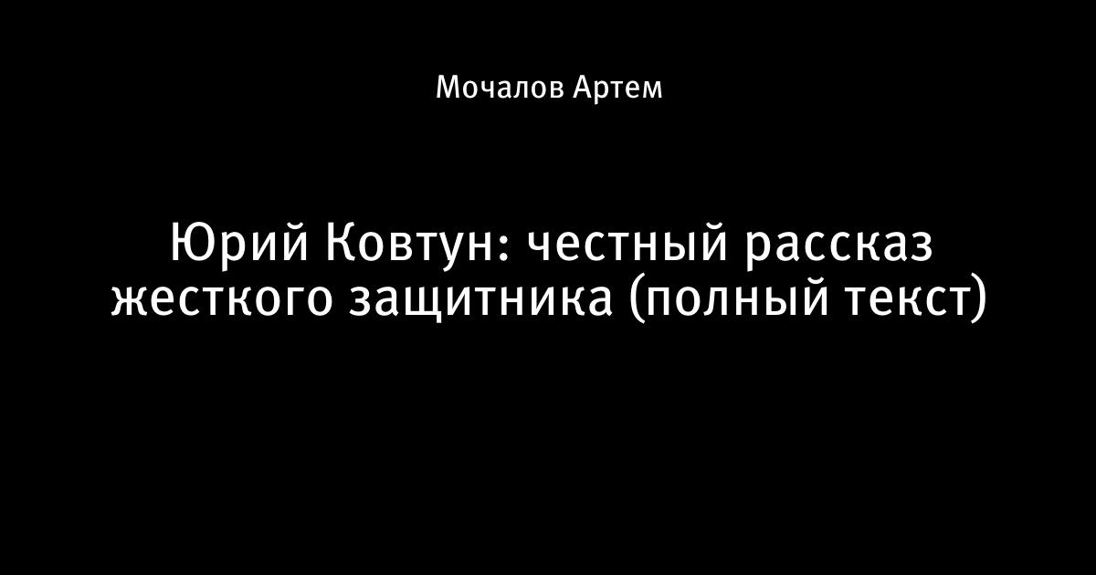 Юрий Ковтун: честный рассказ жесткого защитника (полный текст)