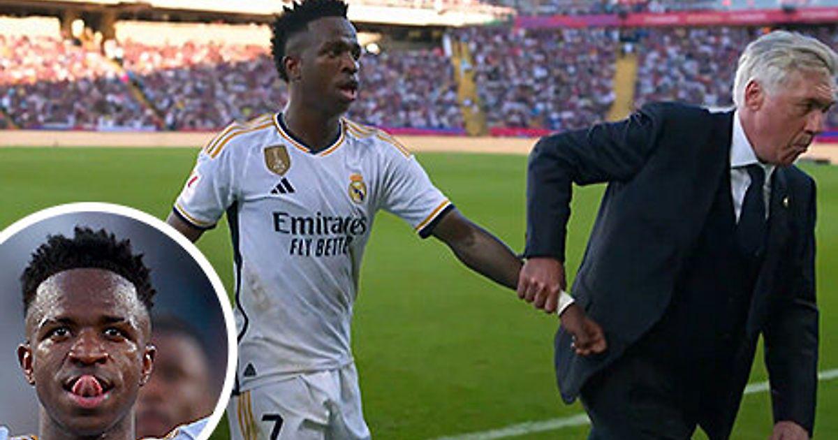 Винисиус издевался над фанатами «Барсы» – в ответ на оскорбления. Анчелотти пришлось уводить его за руку