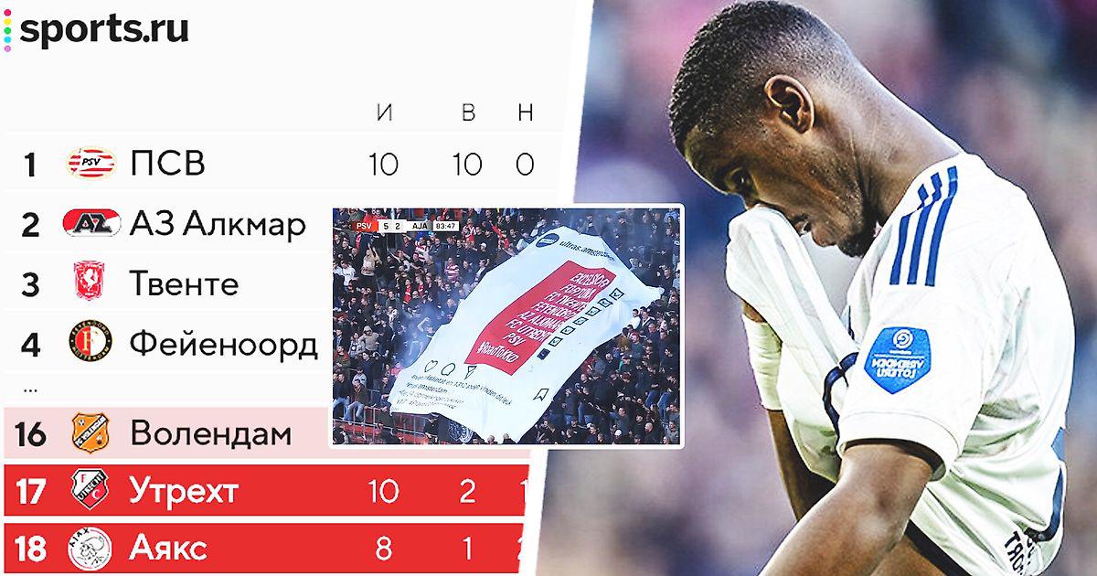 Теперь ПСВ и «Аякс» по краям: команда из Эйндховена лидирует, а амстердамцы на самом дне.