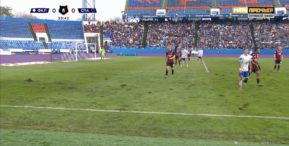 Теперь отдельно про поле,с позволения сказать.То, на чем играли команды иначе как огородом назвать нельзя.Мяч дробил, ускользал из под ног, не был в полной мере адаптирован под такое покрытие.Интересный и показательный в этом смысле момент, когда Абаскаль у скамейки подошел и ногой вправил в прямом смысле «кусок травы» в грунт. Выглядело это крайне забавно.Но тем не менее - если ты профессионал, если ты ставишь задачу - чемпионство, если ты наконец имеешь честь носить майку «Спартака» с ромбом на груди - то вне зависимости от поля, погоды, настроения - такие команды как воронежцы должен, хотя нет, обязан обыгрывать.