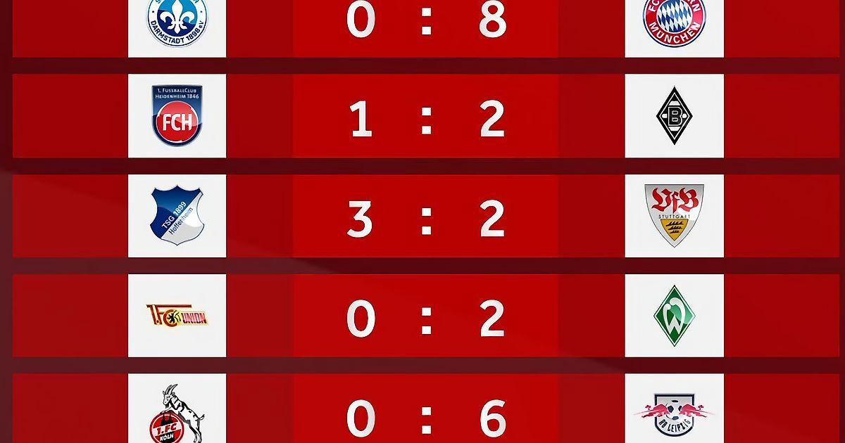 - В матче с «Дармштадтом» мюнхенская «Бавария» впервые в своей истории забила восемь голов во второй половине матча Бундеслиги и в то же время стала первым клубом в истории БЛ, забившим 34 гола в первых девяти играх сезона.