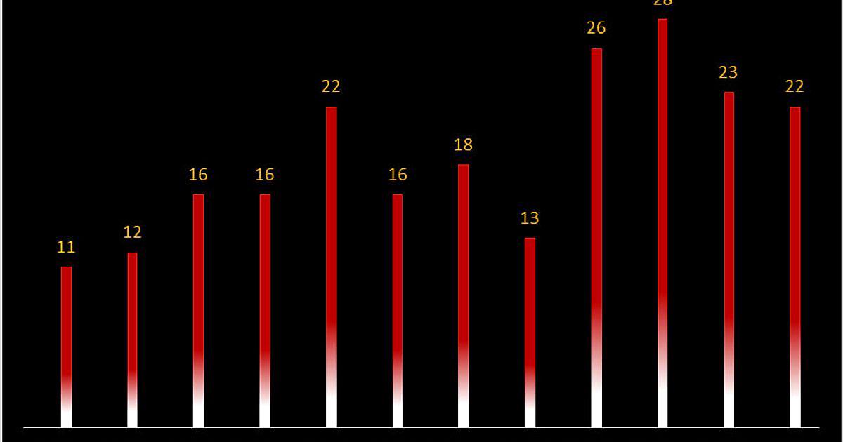Одновременно с этим, добытое количество очков по итогам 10-ти туров текущего турнира Серии А (см. диаграмму), пусть на минимальное значение, но является наименьшим под началом Пиоли. Разница невелика и сыграно-то всего ничего. Но бросается в глаза разве что феноменальный чемпионский сезон 2021/22, в котором «Милан» по итогам первой декады матчей набрал 28 очков.