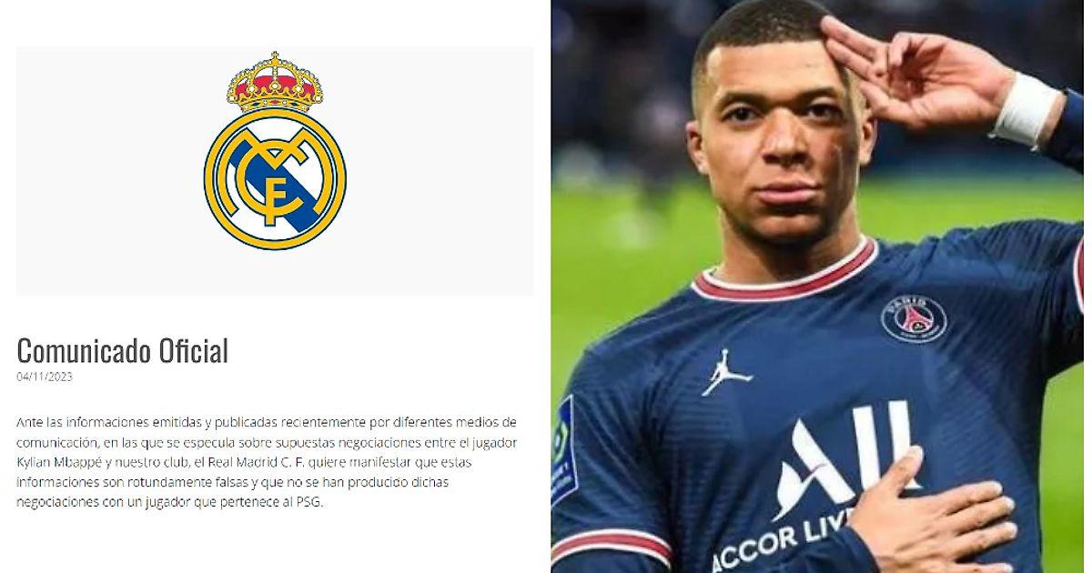 «В связи с информацией, распространенной и опубликованной в последнее время различными СМИ, в которой говорится о якобы имевших место переговорах между игроком Килианом Мбаппе и нашим клубом, «Реал Мадрид» хочет заявить, что эта информация категорически ложная и что никаких подобных переговоров с игроком, принадлежащим «ПСЖ», не велось».