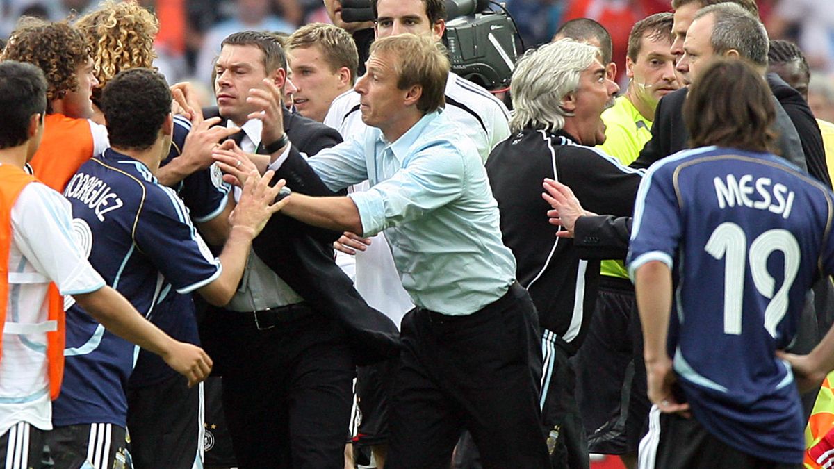 Это было великолепное драматическое зрелище, но закончилось оно бесславно — массовой дракой в центре поля, в которой Леандро Куфре получил красную карточку, ударив ногой Пера Мертезакера. «Первая провокация исходила от сборной Аргентины, — настаивал полузащитник сборной Германии Микаэль Баллак. — Они кричали на наших игроков, когда шли к точке. Они что-то кричали по-испански, и мы не понимали, что они говорят. Но они определенно пытались повлиять на наших нападающих. После того, как Тим Боровски забил [4:2], он приложил палец к губам, чтобы показать им, чтобы они заткнулись. Они немного разозлились на этот жест. После этого я мало что видел, но увидел одного или двух, лежащих на земле». На видеозаписи видно, что Родригес ударил Бастиана Швайнштайгера по затылку, произошла потасовка между Торстеном Фрингсом и Фабрисио Колоччини, а также с участием генерального менеджера сборной Германии Оливера Бирхоффа и Хуана Пабло Сорина.