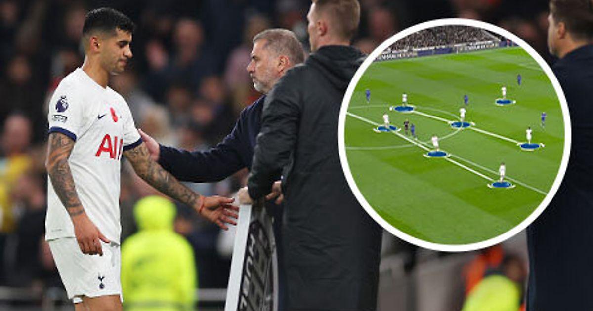 В чем смелость «Тоттенхэма» особенно поражала? Во-первых, схема. Классический вариант для команды, которая остается вдесятером – 4-4-1. Постекоглу, как и в матче с «Лутоном», предпочел 4-3-2 с парой нападающих Кулусевски – Сон. Фактически нападающих у «шпор» становилось даже больше, чем в равных составах.