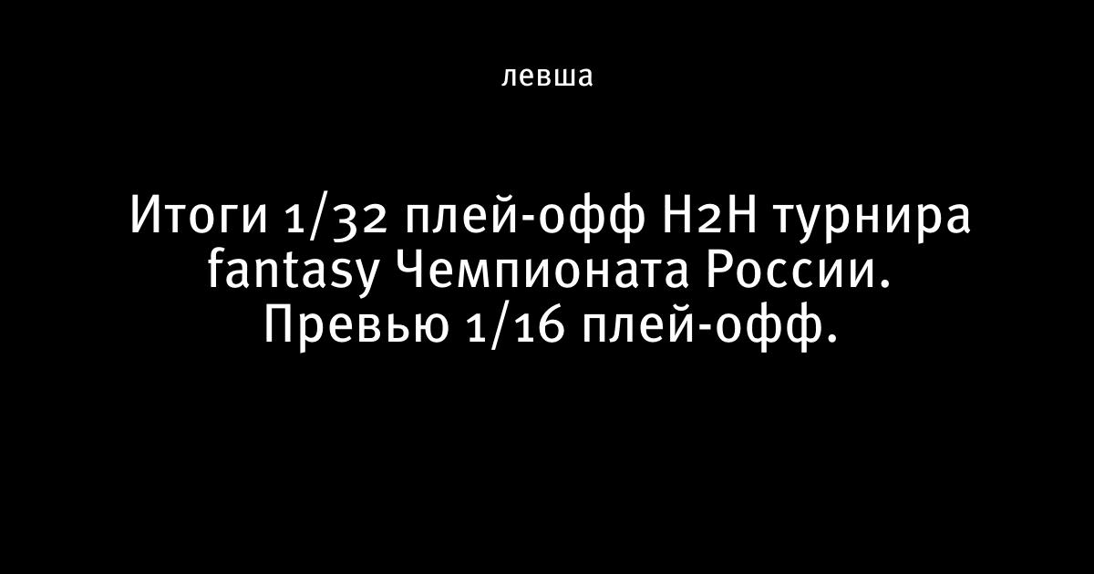 Итоги 1/32 плей-офф Н2Н турнира fantasy Чемпионата России. Превью 1/16 плей-офф.