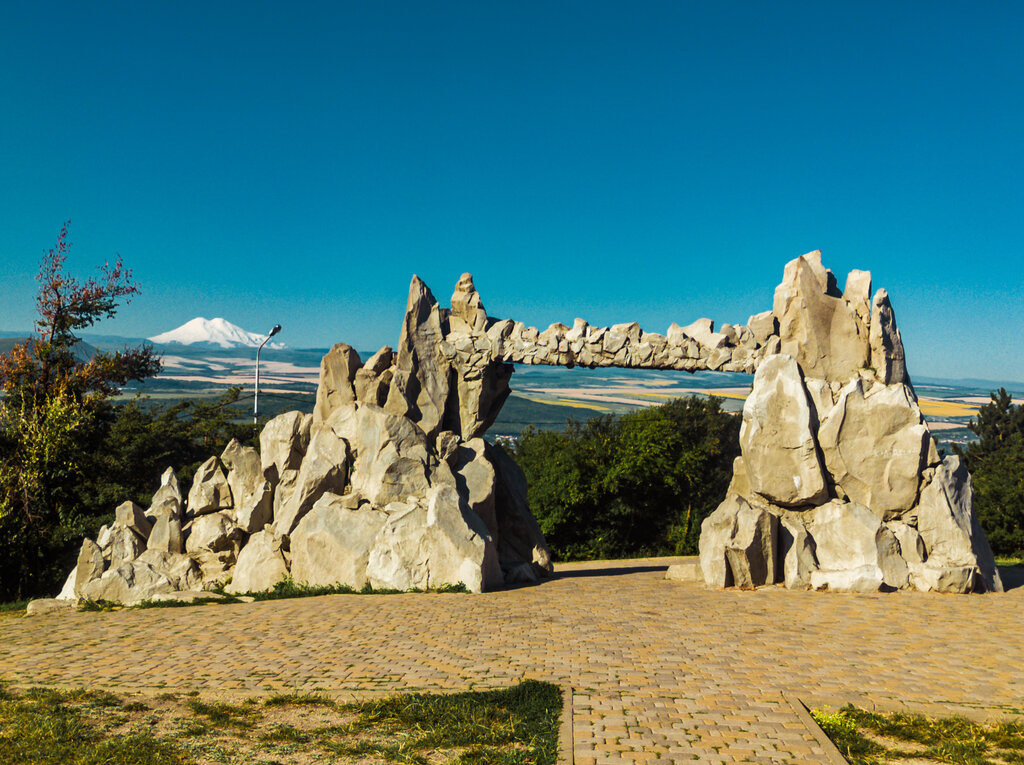 Вы, наверное, уже обратили внимание, что многие достопримечательности Пятигорска создавались в 1970-х годах. Они украшали город и привлекали туристов. Арка была создана в то же время. Причем тут тоже не обошлось без красивой легенды о красавице Машуке, ее возлюбленном женихе Тау и его злобном отце Эльбрусе, который тоже влюбился в девушку и решил извести своего сына. В результате войско сына восстало против сторонников Эльбруса. Началась кровопролитная битва, в которой погибли все воины. Все великаны–нарты превратились в горы и камни. Из части этих камней как раз и сложены Ворота Любви.