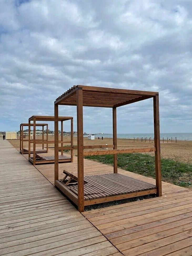 Деревянный настил уложен вдоль всего пляжа.