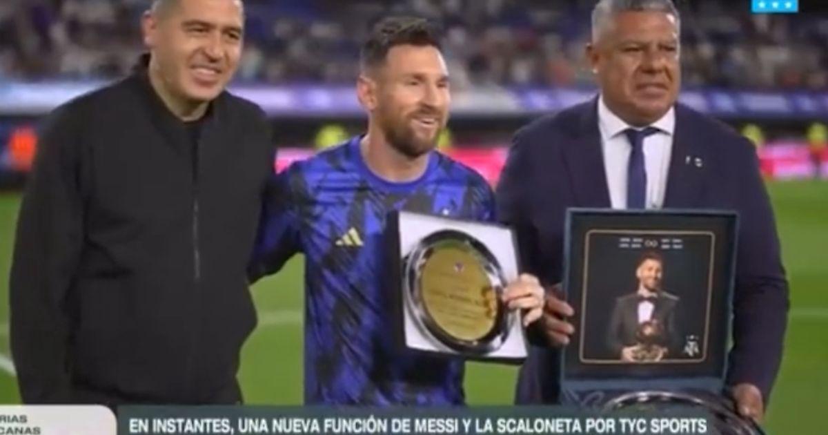 А после Хуан Роман вручил памятную награду Лео Месси.