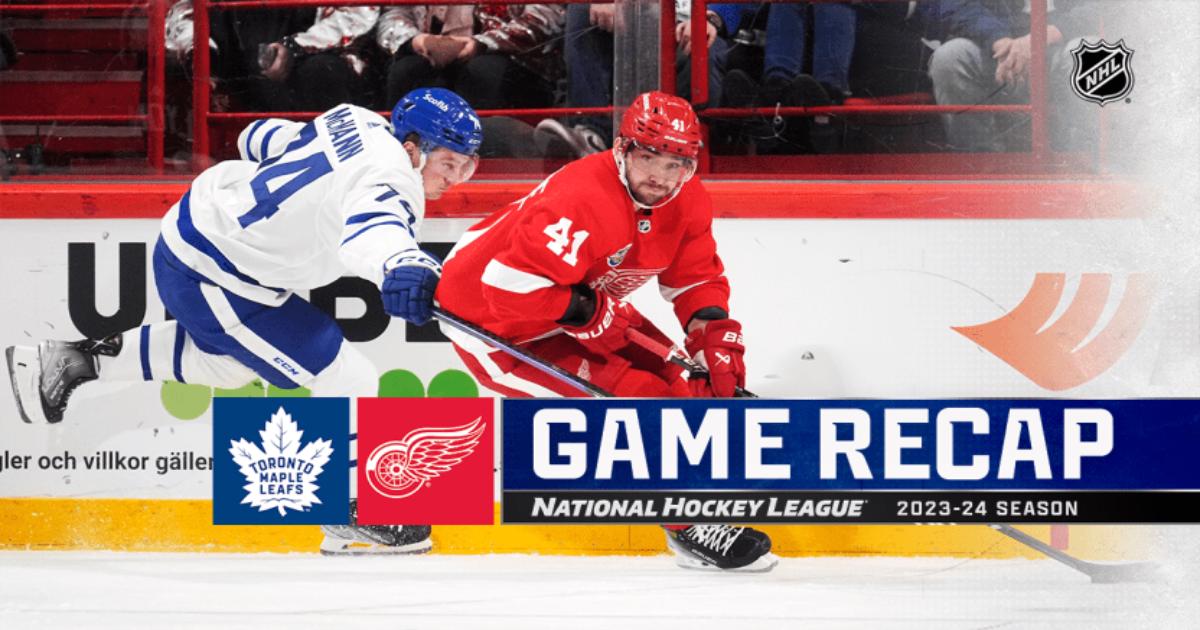 "Детройт Ред Уингз"-"Торонто Мэйпл Лифс" 2:3. Номинальные гости в 3 периоде забросили 3 шайбы. Вильям Нюландер и Джон Таварес набрали по 3 очка (1+2), Тайлер Бертуцци набрал2 очка (1+1), Илья Самсонов отразил 27 бросков. "Кленовые листья" выиграли 3 игру подряд.