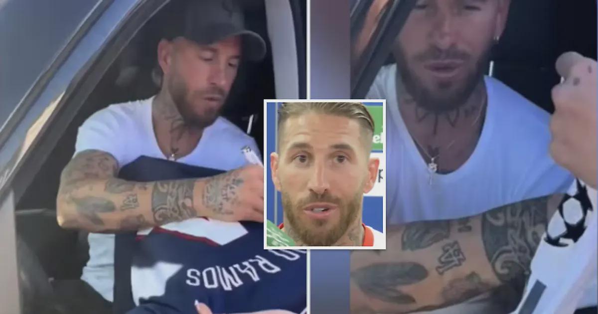 В сети вирусится видео, на котором Серхио Рамос отказывается подписывать футболку «Реала».