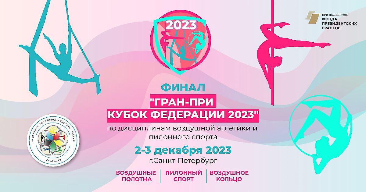 2-3 декабря 2023 года в Санкт Петербурге состоится Финал «ГРАН-ПРИ КУБОК ФЕДЕРАЦИИ 2023» по дисциплинам воздушной атлетики и пилонного спорта, который проводится при поддержке Фонда Президентских грантов (Победитель конкурса, заявка 23-2-021039)