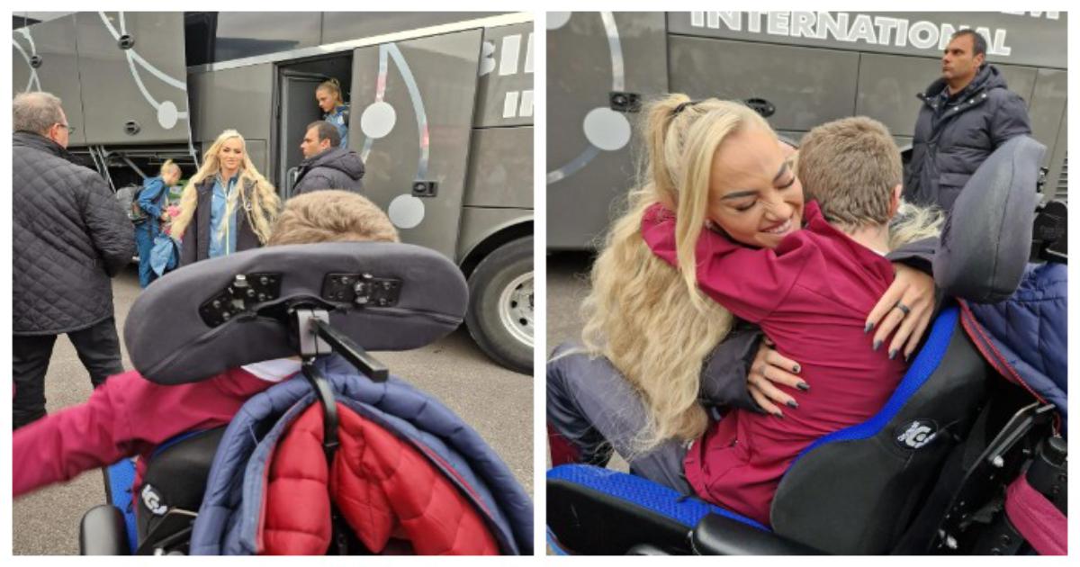 Алиша Леманн выпрыгнула из автобуса «Астон Виллы», чтобы обнять своего поклонника в инвалидной коляске.