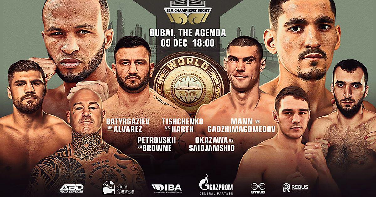 Грандиозный турнир «Ночь чемпионов IBA» пройдёт 9 декабря в рамках очередного конгресса Международной боксёрской ассоциации в Дубае. В рамках шоу свои поединки проведут Альберт Батыргазиев, Евгений Тищенко, Марк Петровский и Муслим Гаджимагомедов.